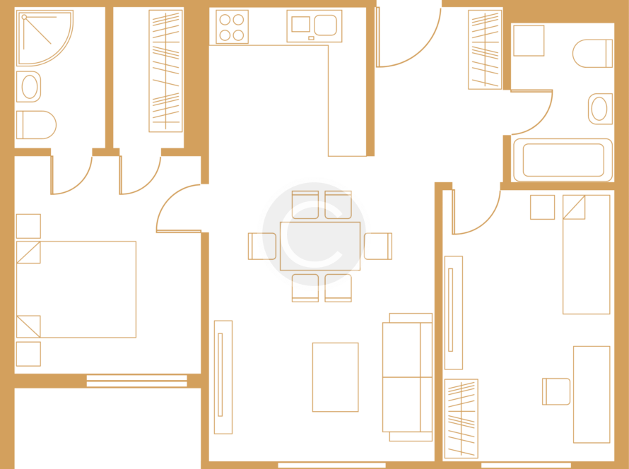 1 bedroom / 2 baths